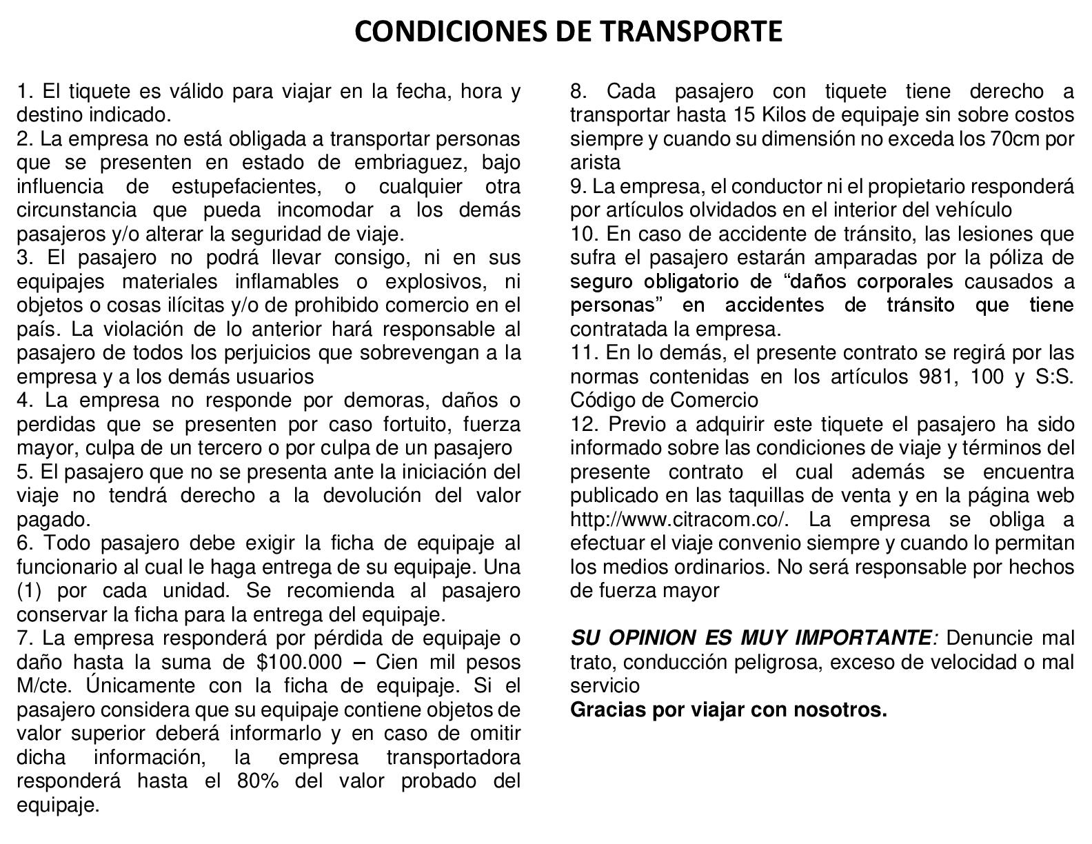 Condiciones de transporte Cooperativa Citracom
